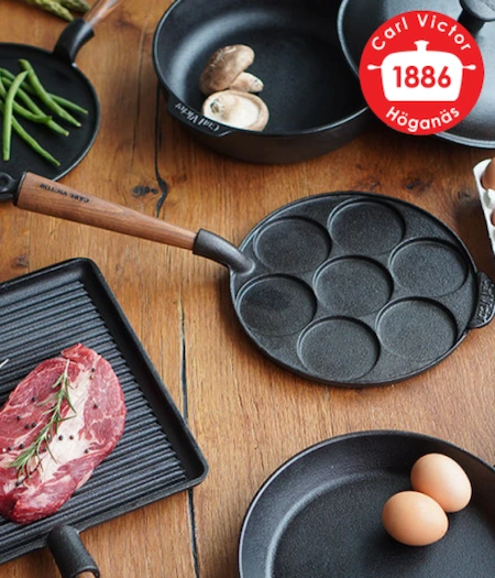 Carl Victors produkter funkar på alla typer av spisar. Funkar även ute över öppen eld, bortsett från de med trähandtag.